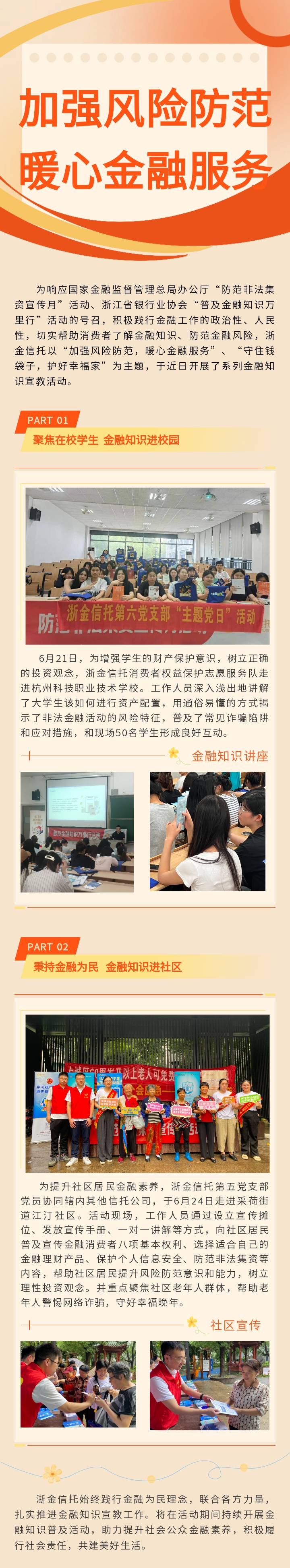 加強風險防范 暖心金融服務 ——浙金信托開展金融知識宣教活動